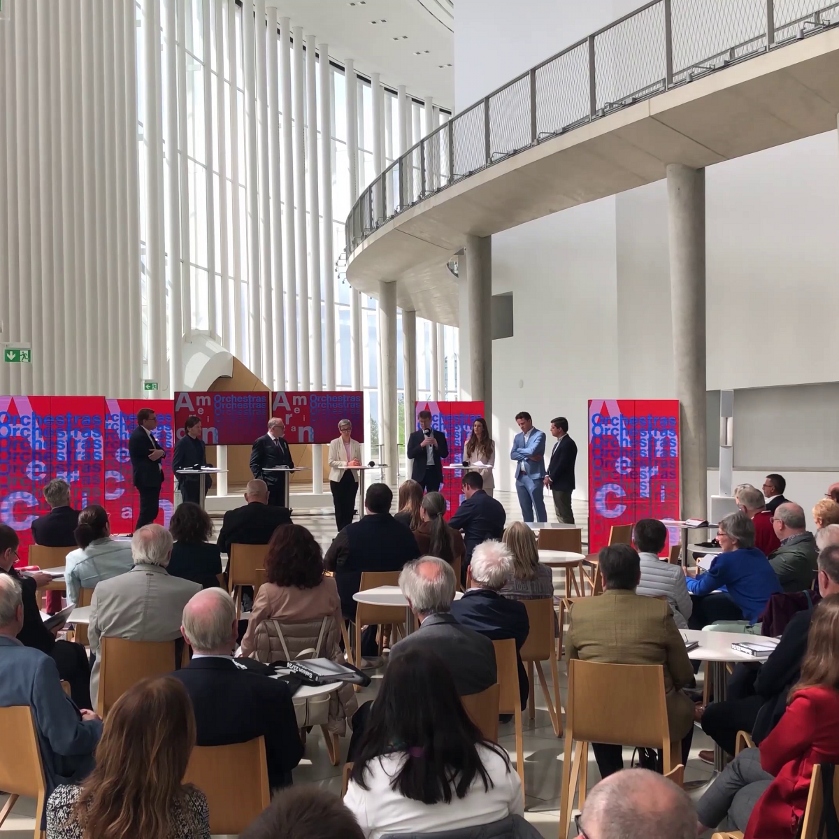 Creation of animations to be used on a big screen behind the DJs during the famous End-of-season party at the Philharmonie Luxembourg. Animations where created in line with their new Corporate Identity, using the concept of lines reacting to music. The animations where created in Adobe After Effects, starting by animating lines linked to audio data from DJ tracks and then putting those into shapes and creating animated loops out of those. Animations could be used in both directions as well as forward/backward, and the colors could be determined by the VJ on the spot in relation with the lighting in the room.